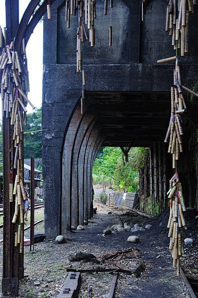 這邊很多的許願竹筒,掛滿在老式火車頭上